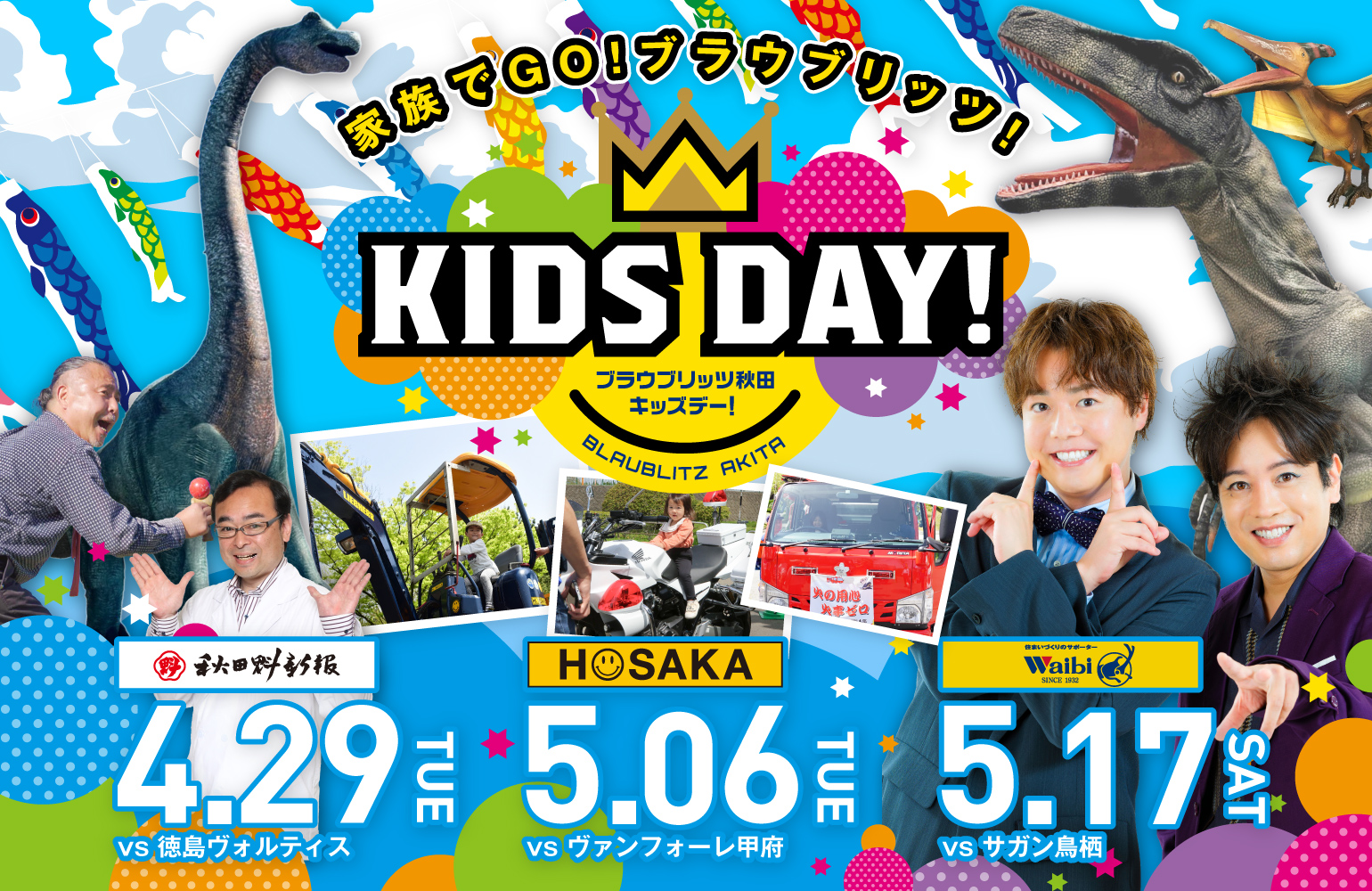 4月29日(火祝) 開催「2025明治安田J2リーグ 第12節 秋田魁新報 Presents ブラウブリッツ秋田 vs 徳島ヴォルティス」、5月6日(火祝)開催「2025明治安田J2リーグ 第14節 ホサカ Presents ブラウブリッツ秋田 vs ヴァンフォーレ甲府」、5月17日(土)開催「2025明治安田J2リーグ 第16節 和以美 Presents ブラウブリッツ秋田 vs サガン鳥栖」にて、「ブラウブリッツ秋田 キッズデー」を開催することとなりましたので、お知らせいたします。