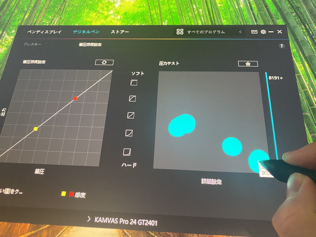 筆圧検知は8192レベル。XP-PENの同等機が16384レベルであることを考えると見劣りします。私はあまり筆圧を重視しないのですが、Proを名乗る製品ラインナップならここはもう少し頑張ってほしかったところですね。