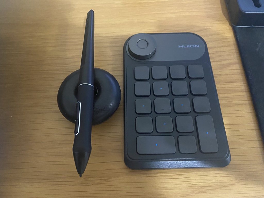 しかしおまけの左手デバイスは、XP-PENと比較してボタン数が多く使いやすいです。各ボタンに各操作を割り当てるカスタマイズできるのは前提として、各クリエイティブソフトごとにそれぞれのキー割り当てを切り替え可能といった、この手のデバイスに最低限求められることは、おまけにしては概ね達成できているかと思います。