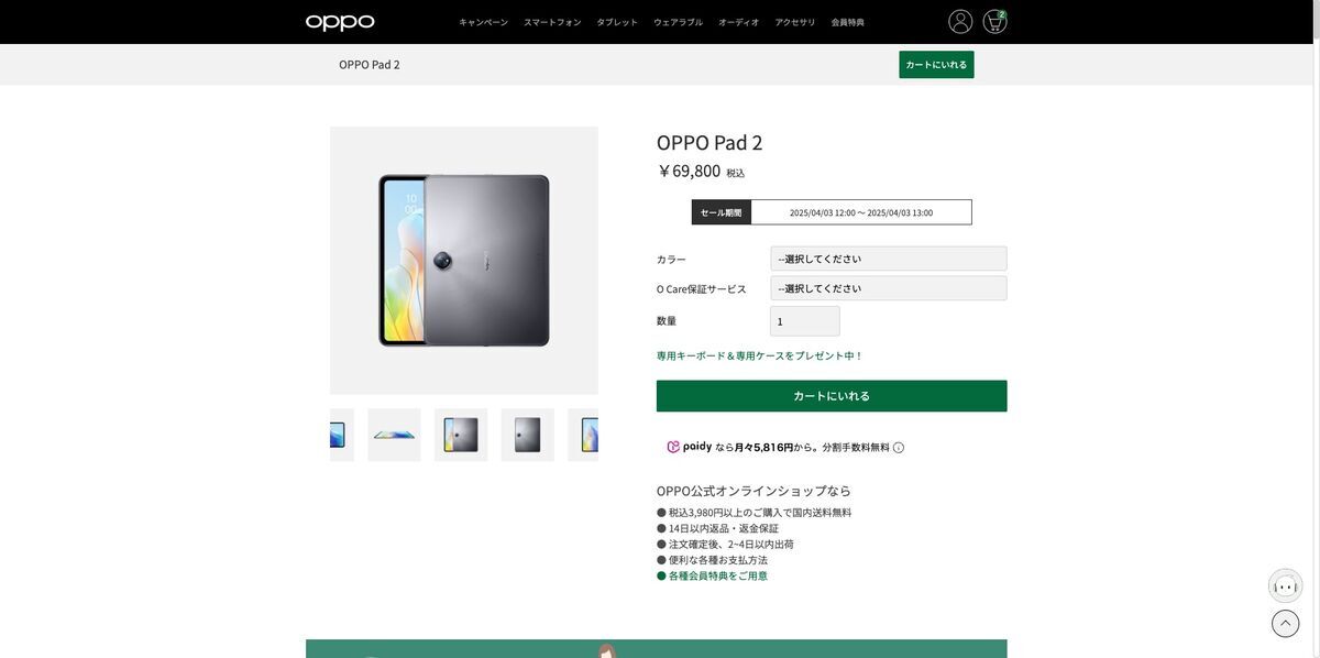 また「OPPO公式オンラインショップ」においては、『OPPO Pad 2』の販売価格が2万円引き下げられるなど、大幅な価格改定が実施されました。