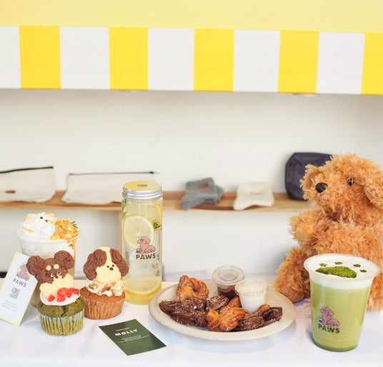 第一弾はもふもふの大きな “犬の手” でドリンクやスイーツを提供するユニークなカフェ「 PAWS(パウズ)」。