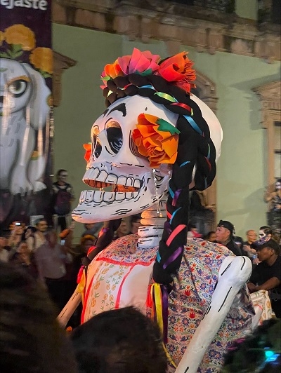 また、オアハカ市内では中心部を回るパレードも行われ、街全体がお祭りムード一色でした。日本のお盆とはまた違った、メキシコならではのやり方に感動しました。また、オアハカ市の美しさに圧倒された死者の日でした。