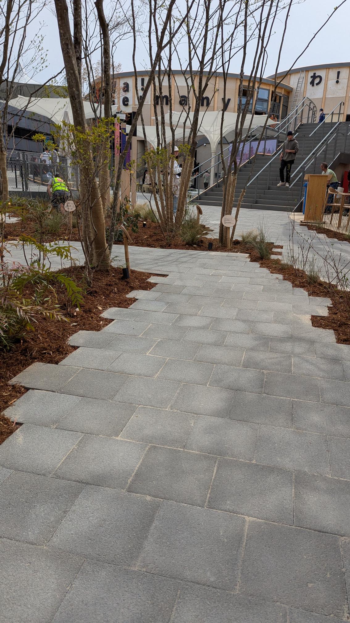 今回、ドイツ館からグッドアイのホームページに連絡が入り、担当者間で協議を重ねた結果、環境に配慮した減CO2ブロックの商品価値がドイツ館の循環型社会を指向したコンセプトと一致したことから、導入されました。