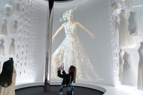 カラードレスを作る前に、影や形が見やすいように白いドレスを作るというディオールの制作過程を視覚的に感じられる