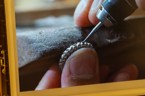 ロダンの作品「合わさる手」を置いたりと、カバン作り職人へのリスペクトを表現