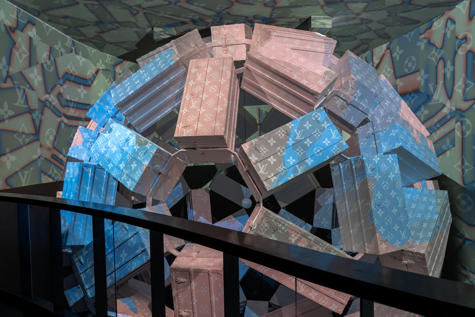 84個のルイ・ヴィトンのトランクが積まれたライブラリー空間。上部は鏡になっていて技術の継承をイメージ