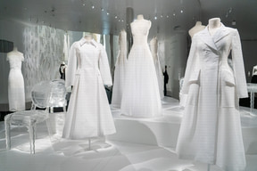 カラードレスを作る前に、影や形が見やすいように白いドレスを作るというディオールの制作過程を視覚的に感じられる