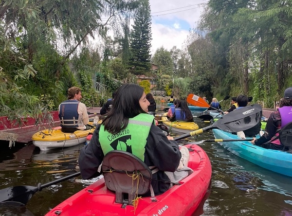 またメキシコシティにあるXochimilco(ソチミルコ)という運河でカヤックの体験をしました。Xochimilcoとはメキシコの先住民族言語のナワトル語で「花畑」という意味で、先スペイン期に水上都市だった頃の名残の場所です。世界遺産にも登録されていて歴史や自然あふれる魅力的な観光名所です。