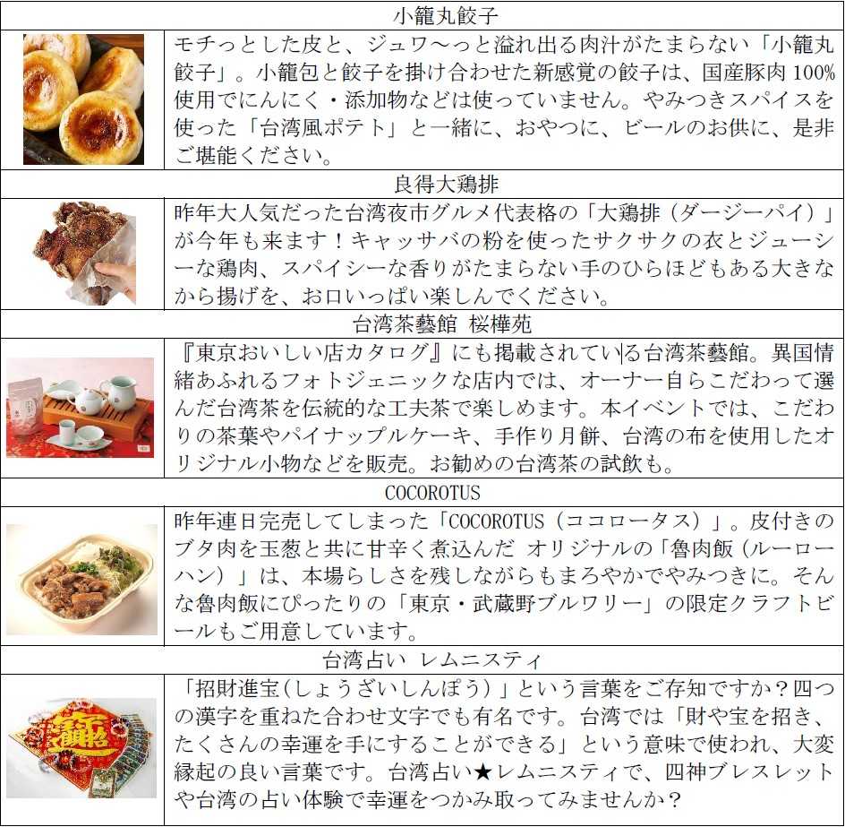 台湾フードを中心にリフレクソロジーやワークショップブースが多数出店するイベント