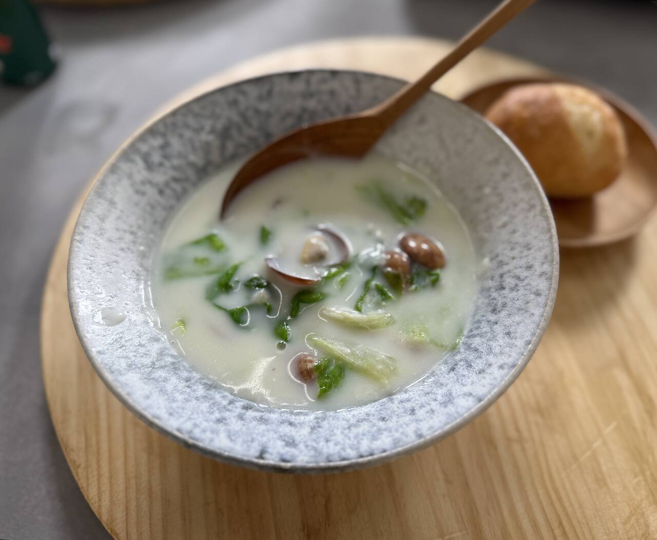 第1回目は「これでいいの⁉」とびっくりするほど簡単な、有賀さんの【あさりとレタスのクイックチャウダー】をご紹介します。