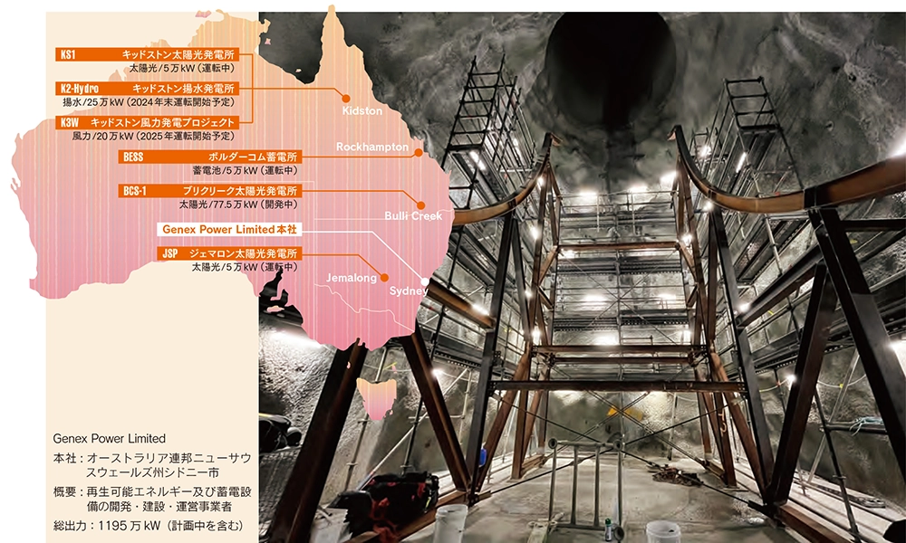 J-POWERは1981年、オーストラリアに現地法人J-POWER Australia Pty. Ltd.を設立。同社を通じ同国内の炭鉱へ投資を行うことで、日本への安定的な石炭供給を担ってきた。一方、地球温暖化が顕在化する中、同国でも再生可能エネルギー(以下、再エネ)の大量導入が進んでいることを受け、J-POWERは2020年に再エネ発電事業を担う現地法人JP Generation Australia社(以下、JPGA社)を設立。2021年には同国の再エネ企業Genex Power Limited(以下、Genex社)の株式の一部を取得し、Genex社の太陽光や風力、揚水発電などのプロジェクトに参画してきたが、2024年7月にGenex社の全株式を取得し、完全子会社化した。