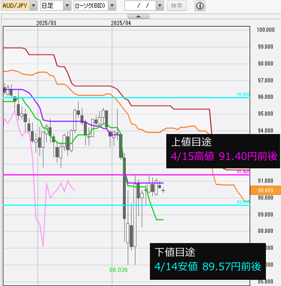 本日はイースターマンデー(復活祭後の月曜日)で欧州圏や豪州をはじめ、多くの国や地域が祝日となることから、東京時間から欧州時間にかけては積極的な取引は控えられるとみられる。米国は祝日ではないが、主要な経済指標の発表は予定されていない。そのため、豪ドルは米国の株価動向を睨んだ動きがメインとなりそうだ。 米国ではトランプ大統領がパウエル連邦準備制度理事会(FRB)議長への批判を強め、解任する方法を模索している。政治的干渉は中央銀行の独立性を損なう結果になりかねないとの懸念から、リスク回避の動きにつながりやすいだろう。 トランプ大統領の発言に引き続き金融市場が揺さぶられる可能性が高いだけに、発言等には注意したい。