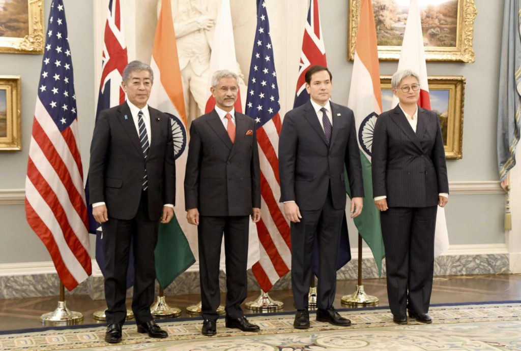 会合に臨む(左から)岩屋毅外相、インドのジャイシャンカル外相、米国のルビオ国務長官、オーストラリアのウォン外相=1月21日、ワシントン(代表撮影)