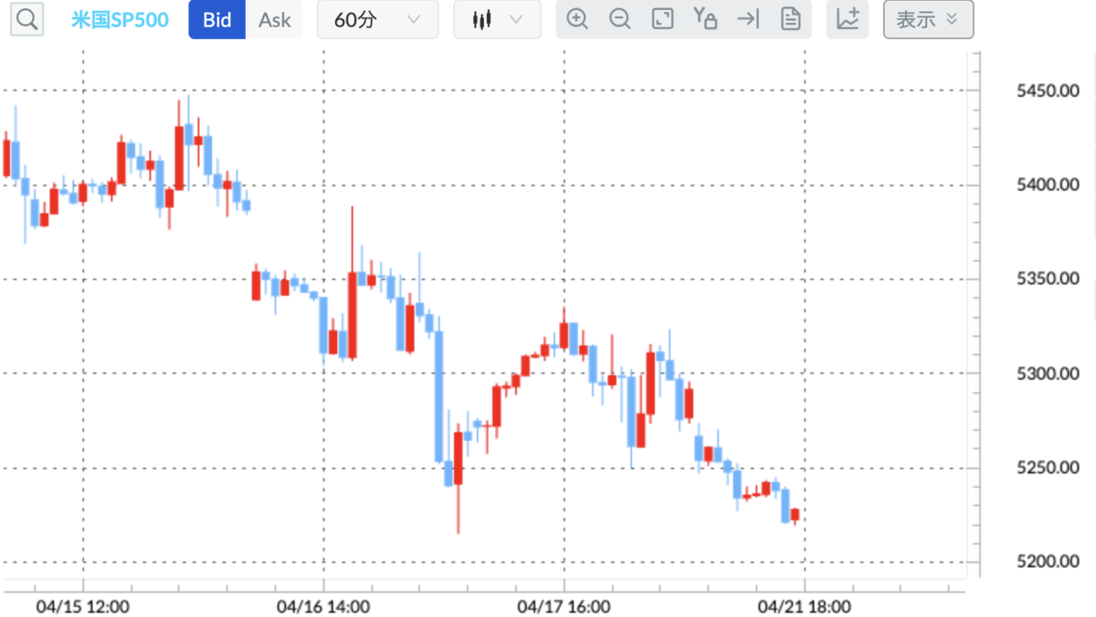 米国SP500 (60分足):S&P500