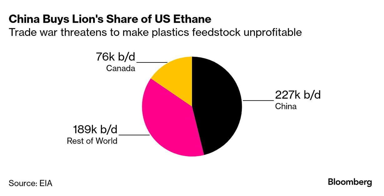 すでに供給過剰に陥っている中国のプラスチック産業にとって、コスト増は新たな打撃だ。貿易戦争は天然ガス液(NGL)やプロパンなど他原料にも影響を及ぼしており、米国での価格急落につながっている。