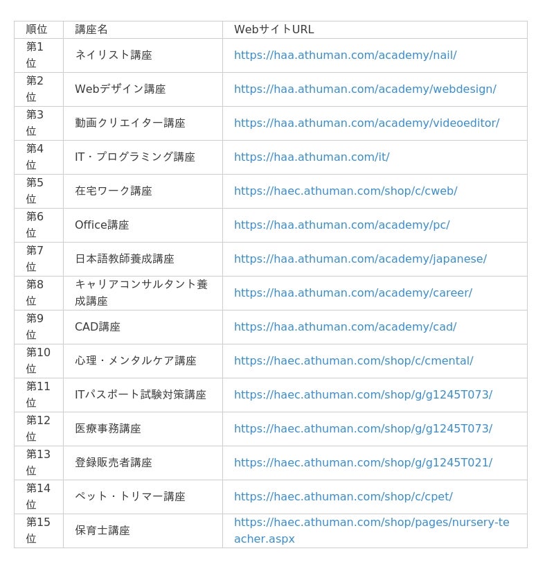 ●1位は、進路に悩んだ学生や夢を諦めきれない若者から注目集まる「ネイリスト講座」