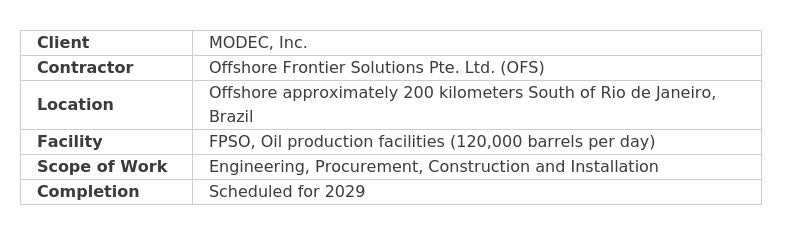 This is OFS’s 3rd order for an FPSO project from MODEC.
