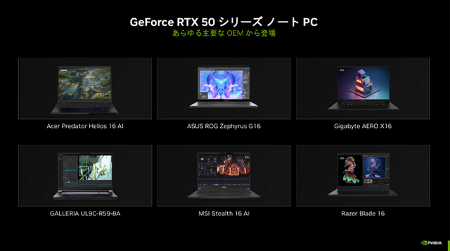 秋葉原にて4月5日、NVIDIAが「NVIDIA Gamer Day」を開催しました。今回の目玉となるのは、AIに特化した「NVIDIA Blackwell アーキテクチャ」を搭載したGeForce RTX GPU、および各社が展開するGeForce RTX 50シリーズ搭載型ノートPCです。