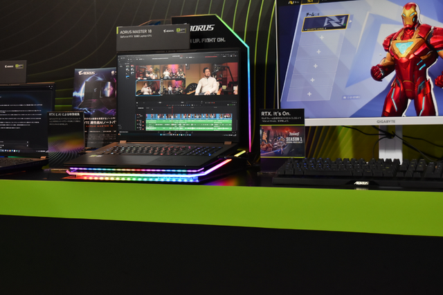 会場では「Acer」「ASUS」「Gigabyte」「GALLERIA」「MSI」各社が手掛けたGeForce RTX 50搭載PCもずらり。実際に触れるようになっていました。一部デスクトップPCも展示されているものの、主体となるのはノートPCです。