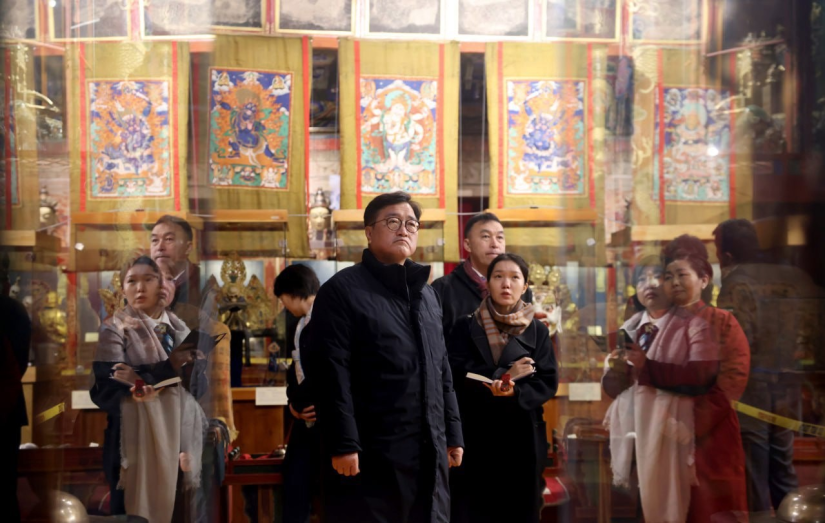 Afterwards, Speaker Woo Won-shik and the South Korean delegation toured the Choijin Lama Temple Museum, one of Mongolia’s most treasured Buddhist heritage sites, viewing the Maharaja Temple, the Main and Zankhan Temples, the Zuu Temple, and the Yadam Temple. Museum director D. Otgonsuren welcomed the Distinguished Guests and introduced the museum’s unique exhibits. Founded 110 years ago and reconstituted as an independent museum in 2000, the Museum holds more than 6,000 artifacts, 77 of which are listed as “Unique and Priceless Historical and Cultural Treasures of Mongolia.”