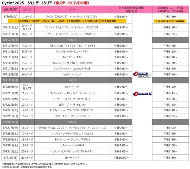 Cycle*2025 ジロ・デ・イタリア 放送・配信スケジュール