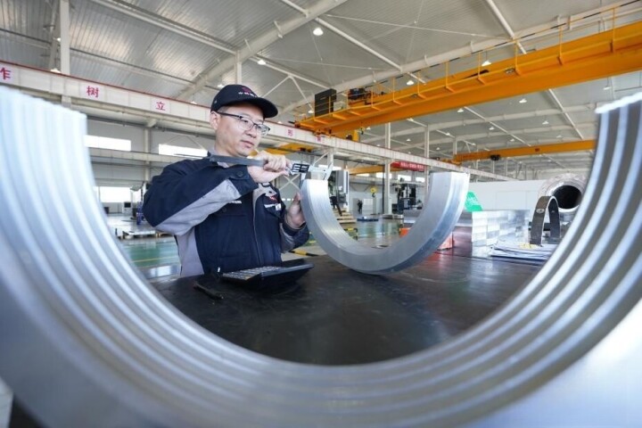 河北省張家口経済技術開発区にある中儲国能傘下の100メガワット(MW)級先進圧縮空気エネルギー貯蔵システム設備製造拠点で作業員が急ピッチで生産作業に取り組んでいた。中国新聞網が伝えた。