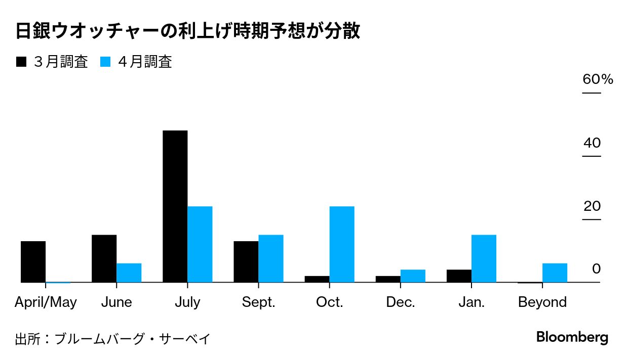 目標達成時期が後ずれした場合、市場が想定する半年に1回程度の利上げペースや今回の利上げ局面でのターミナルレート(最終到達点)に影響する可能性がある。エコノミスト調査では、米関税を受けてエコノミストの早期利上げ予想が後退し、ターミナルレートの想定は中央値で1%と前回3月調査の1.25%から低下した。