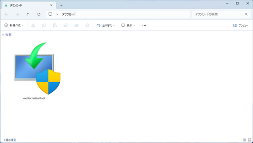 「Windows 11 メディア作成ツール」はmediacreationtool.exeというファイル名でダウンロードされます。インストールメディア用のUSBメモリをPCのUSBポートに挿した後、mediacreationtool.exeを起動してください。あとは画面の指示に従って作成作業が進みます。