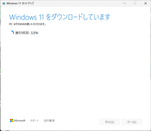 「準備ができるまでお待ち下さい」を経て「Windows 11をダウンロードしています」画面に移ります「USBフラッシュドライブの準備ができました」が表示されれば「完了」です