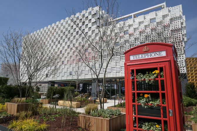 開幕中の2025年大阪・関西万博にある英国パビリオン=4月9日、大阪市内