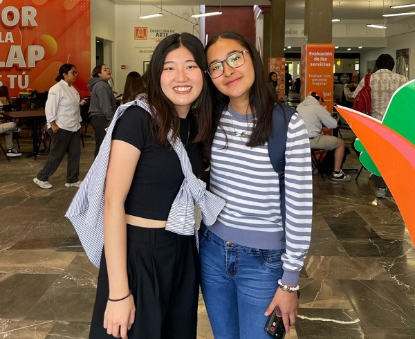 ▲昨年、交換留学をしていたラスアメリカスプエブラ大学を訪れたときに再会した元ルーミー(右)です