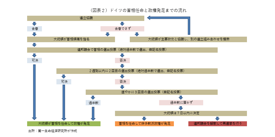 3回目も過半数の支持が得られなかった場合、議会の解散権を持つ大統領は7日以内に、そのまま首相を任命して非多数派政権を樹立するか、連邦議会を解散して再選挙を行うかを決断する。
