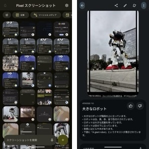 「通話メモ」は補助記憶装置としてのスマホにふさわしい実用的機能ですが、「AIスマホ」の可能性として面白いのは「Pixelスクリーンショット」アプリ。