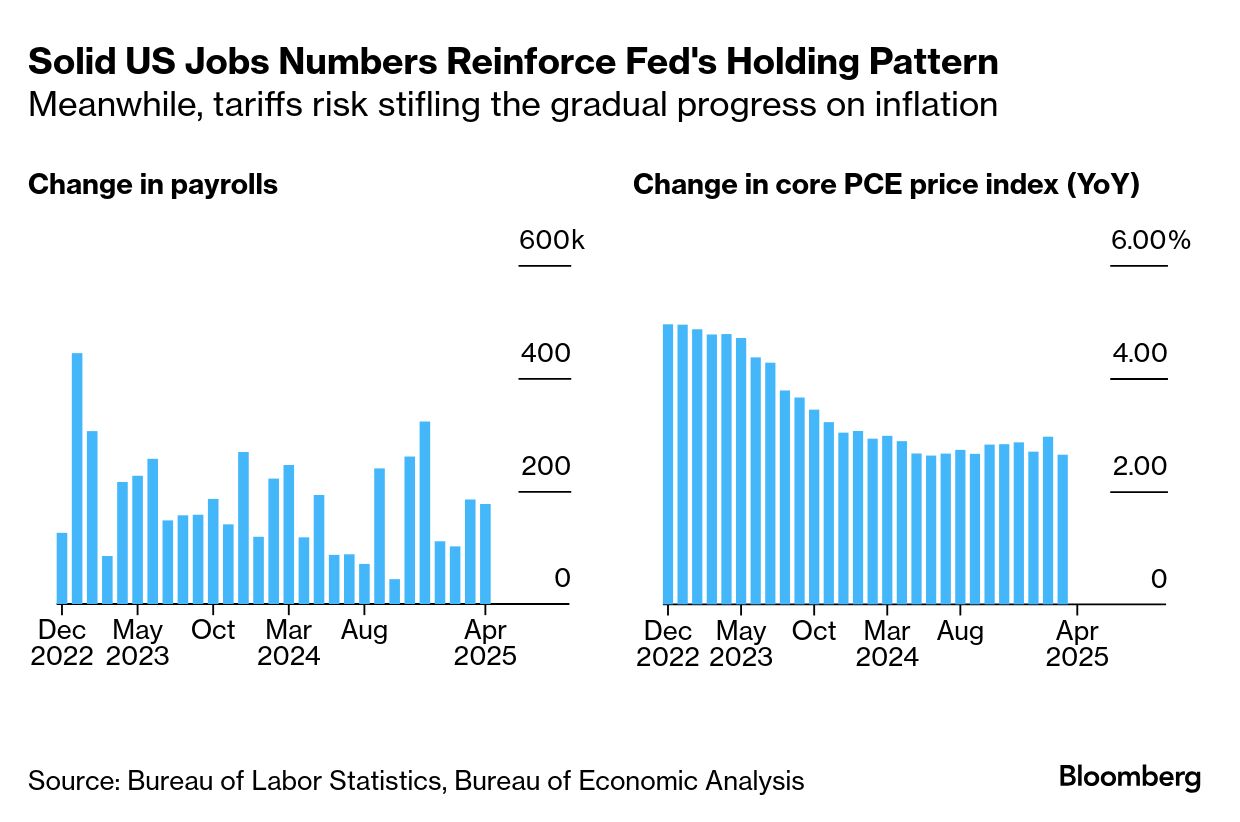 金利先物市場は現在、当局が6月29、30両日のFOMC会合で0.25ポイントの利下げに踏み切り、年内にさらに2回か3回の利下げを行う見通しを織り込んでいる。これに対し、ブルームバーグがエコノミストを対象に実施した最新調査では、年内利下げは9月を皮切りに2回にとどまるとの予想が示された。
