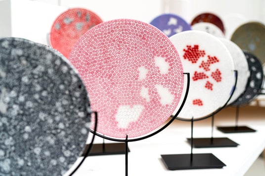 1969年大阪生まれ。イタリア・ヴェネツィアのムラーノ島にアトリエを構える唯一の日本人ガラス作家。強いコンセプトと詩的な表現をあわせ持つ作風から、“ガラスの詩人”と称される。文学・建築・映画・ファッション・音楽など、ジャンルを超えたコラボレーションも積極的に展開。2021年には田邊アツシ監督によるドキュメンタリー映画『マゴーネ/土田康彦』が世界11の映画祭に出品され、5つの賞を受賞。2023年には日本橋三越本店にて大規模な個展を開催。