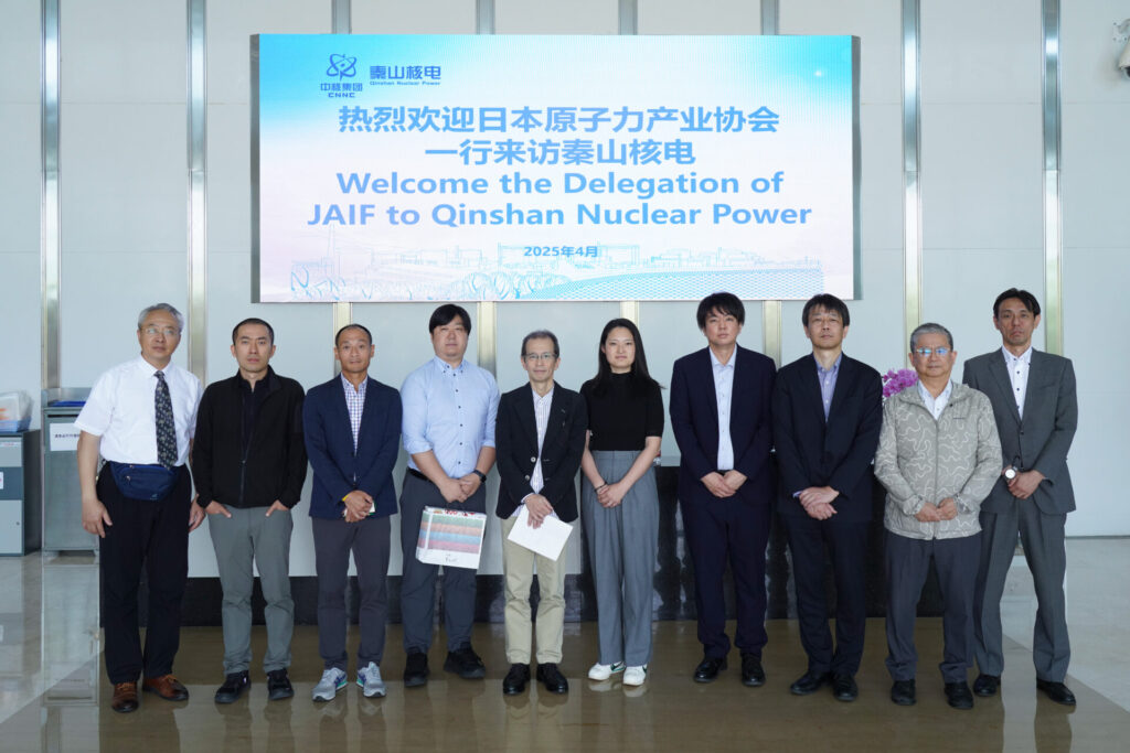 当協会及び会員企業から結成される訪問団一同(全8名)は、2025年4月24日(木)~29日(火)の日程で中国の原子力産業協会「中国核能行業協会(CNEA)」が主催する、中国原子力開発フォーラム―2025年国際サミット春(China Nuclear Energy Sustainable Development Forum—2025 Spring International Summit)(CNESDS)及び、並行して開催された第16回中国原子力産業国際展示会(China International Exhibition on Nuclear Power Industry)(CIENPI)に参加し、合わせてJAIFブースを出展しました。また、CNEAの協力のもと、中国の原子力関係施設への視察も行いました。