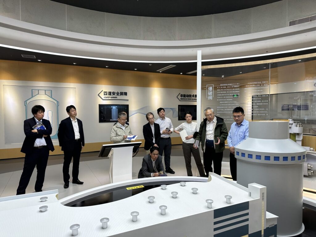 訪問団一行が訪問した科学技術館では、中国における原子力発電の歴史や今後の展望について、幅広く紹介する展示が行われており、一般の来館者にも分かりやすい内容となっていました。当日は多くの地元の学生たちも訪れており、教育的な場としても大いに活用されている様子がうかがえました。