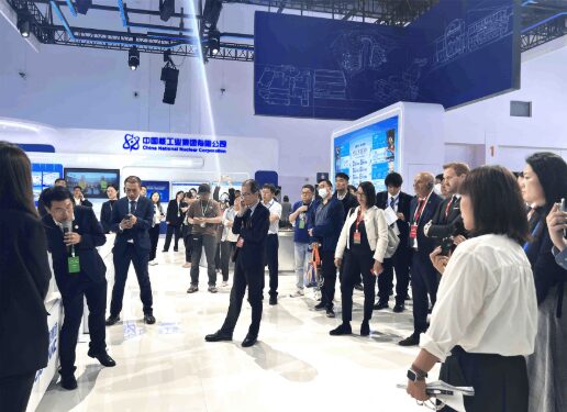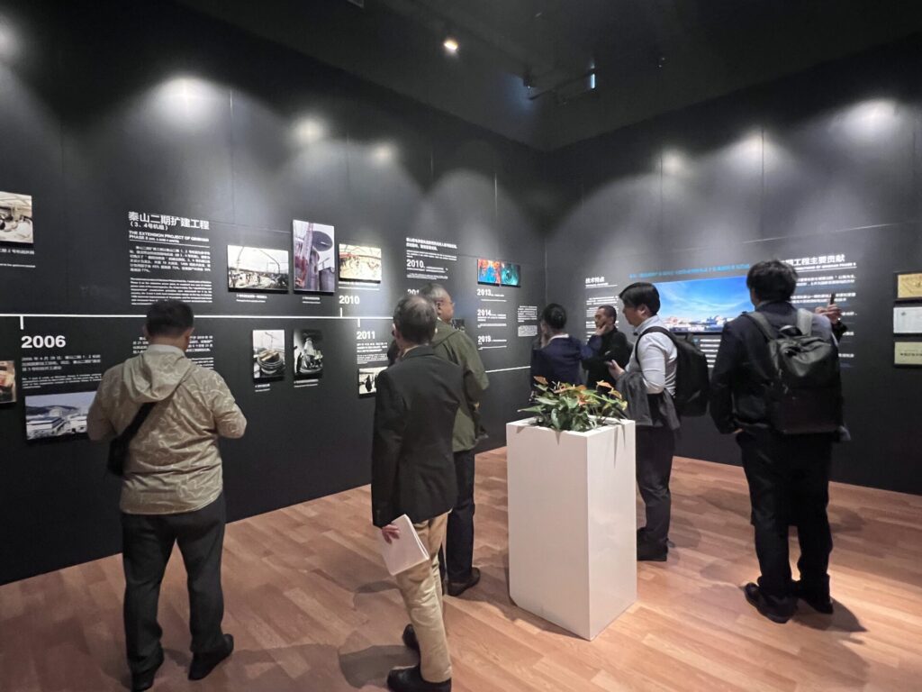 展示会初日には、我々訪問団を含む海外からの来賓が展示ツアーに招待され、華龍一号、玲龍一号、高温ガス冷却炉など、中国の原子力開発の成果を展示するブースをメインに、CNEAの龍茂雄副事務局長の案内のもと会場内を見学しました。