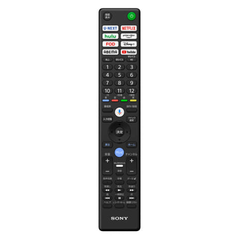 OSは「Google TV」。独自のSONY PICTURES COREほか、NetflixやPrime Video、Hulu、Disney+、TVer、ABEMA、U-NEXT、Apple TV、YouTube、DAZNなどの各種映像配信サービスが楽しめる。