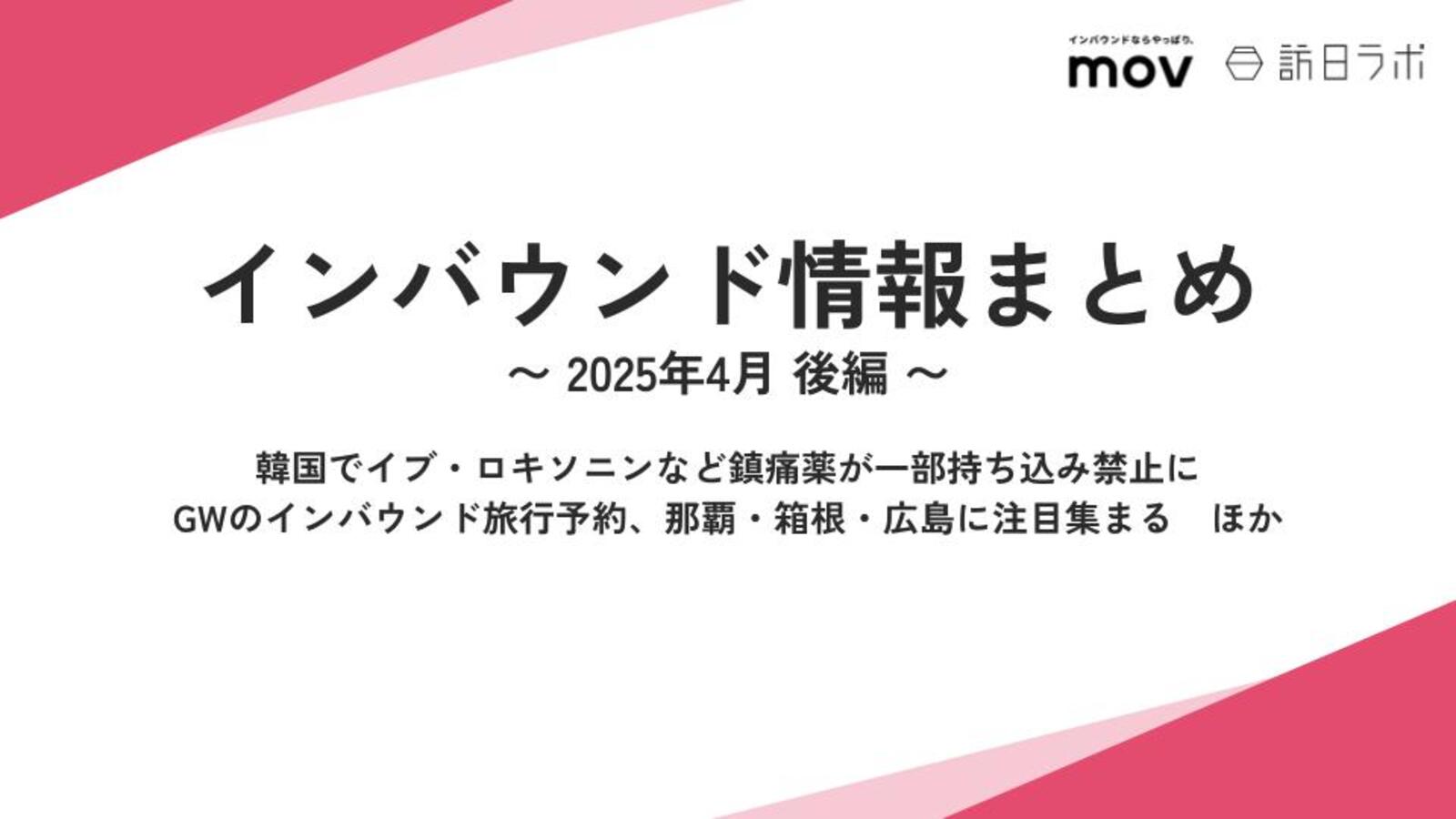 【インバウンド情報まとめ 2025年4月後編】韓国でイブ・ロキソニンなど鎮痛薬が一部持ち込み禁止に ほか