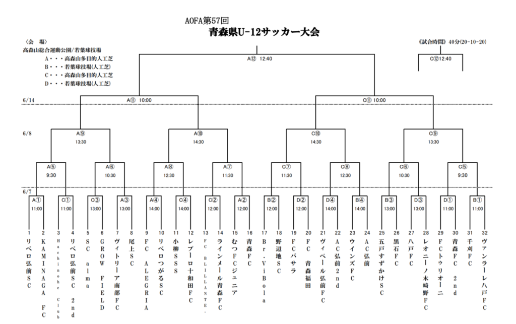 リベロ弘前SC、尾上SC、FC ALEGRIA、青森FC、Br.ViBola、ヴィペール弘前FC、AC弘前、五戸すずかけSC、ヴァンラーレ八戸FCの9チームは昨年のリーグ戦の結果から地区予選免除となります。