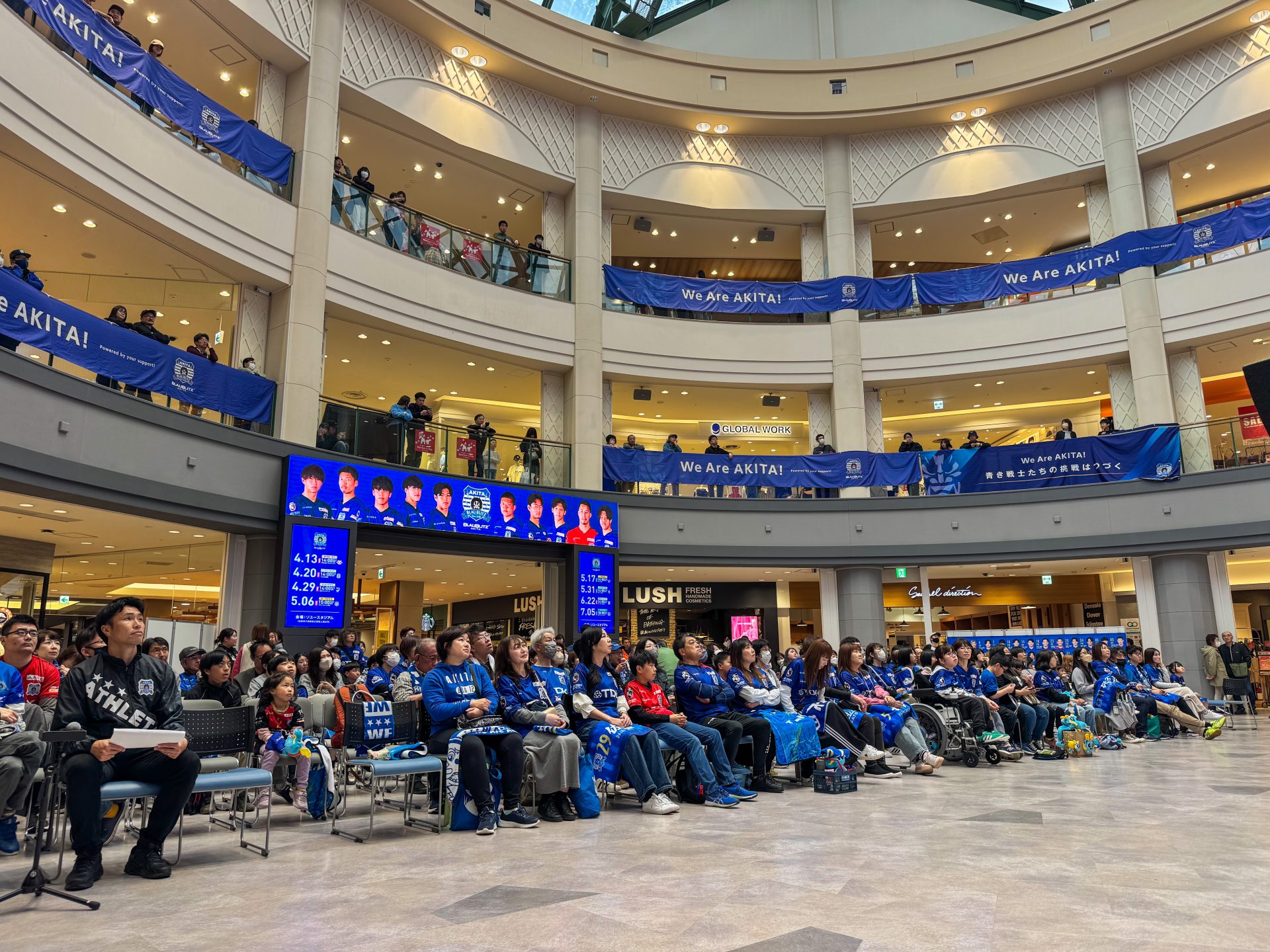 パブリックビューイング実施に伴いご協力いただきましたイオンモール秋田の皆さま、ご協力いただいた皆さまありがとうございました。