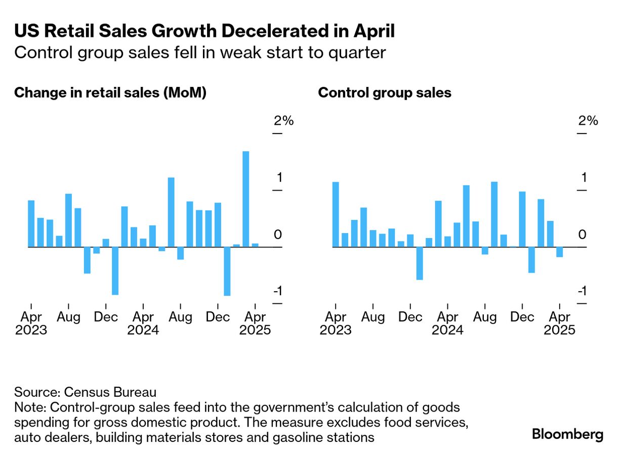 パンテオン・マクロエコノミクスの米国担当シニアエコノミスト、オリバー・アレン氏は「5月と6月の統計で支出が大きく鈍化すると考える理由は十分あると、われわれはみている」とリポートで指摘。「小売業者は先月は恐らく、新たな関税に伴う価格上昇を見越した最後の駆け込み購入によって恩恵を受けた可能性が高いが、それが長く続くことはない」と分析した。
