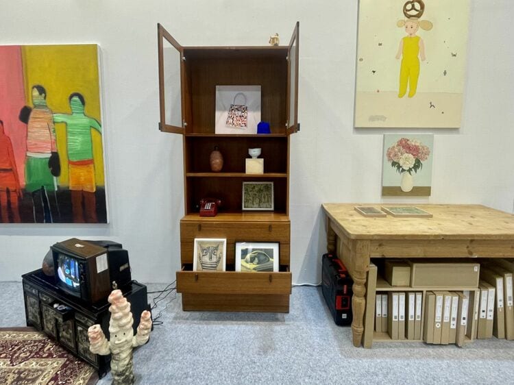レトロな韓国の家具に作品展示。このアートフェアのリラックスムードを象徴していた