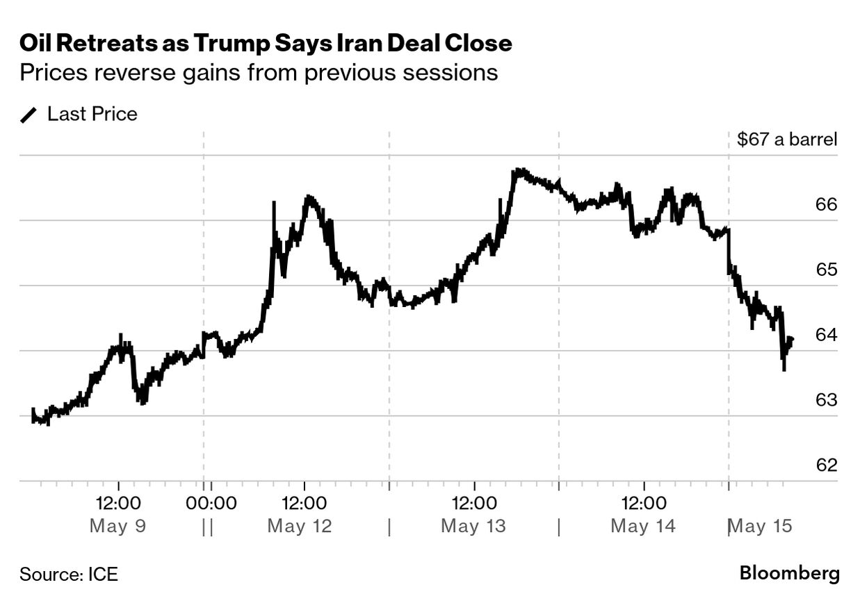 原油先物相場は続落。トランプ米大統領がイランの核計画を巡る交渉について、合意に近づいているとの認識を示したことに反応した。合意に至った場合、すでに供給過剰に向かっている市場で供給が一段と増える可能性がある。