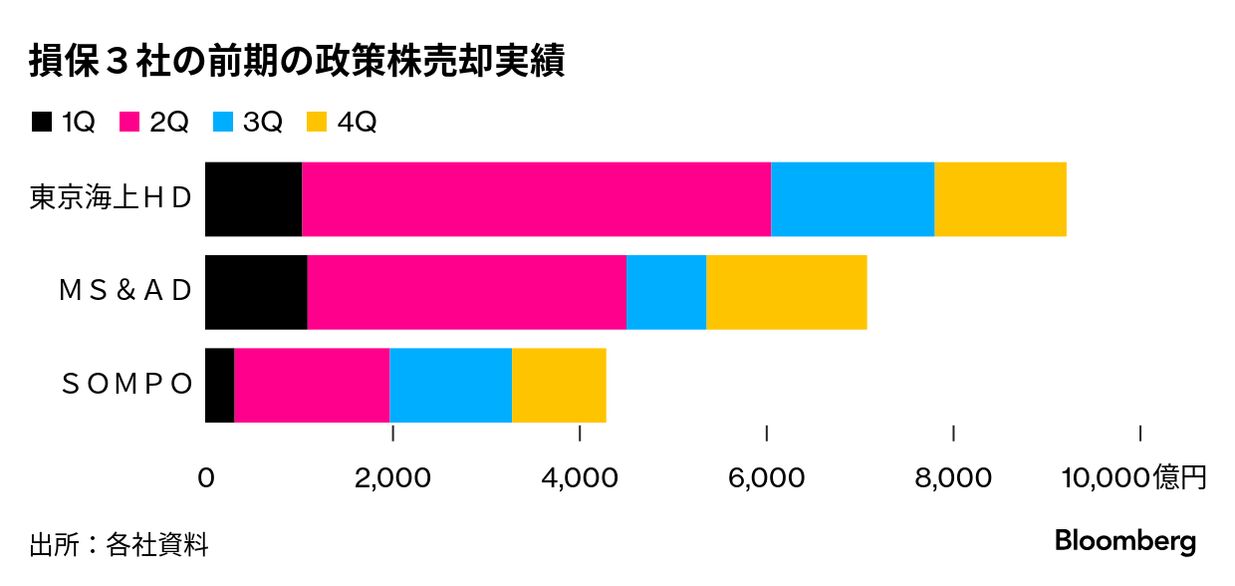 東京海上HDの岡田健司副社長は決算会見で「さまざまなお客さまから売却合意をいただけたことにより、実績として年初計画を大幅に上回った」と述べた。SOMPOの濵田昌宏副社長も「発行体にも大きな変化があり、順調に進んだ」と振り返った。今期以降についても「政策株はゼロに向けて可能な限り前倒しで売却している」とMS&ADの田村悟専務は語った。