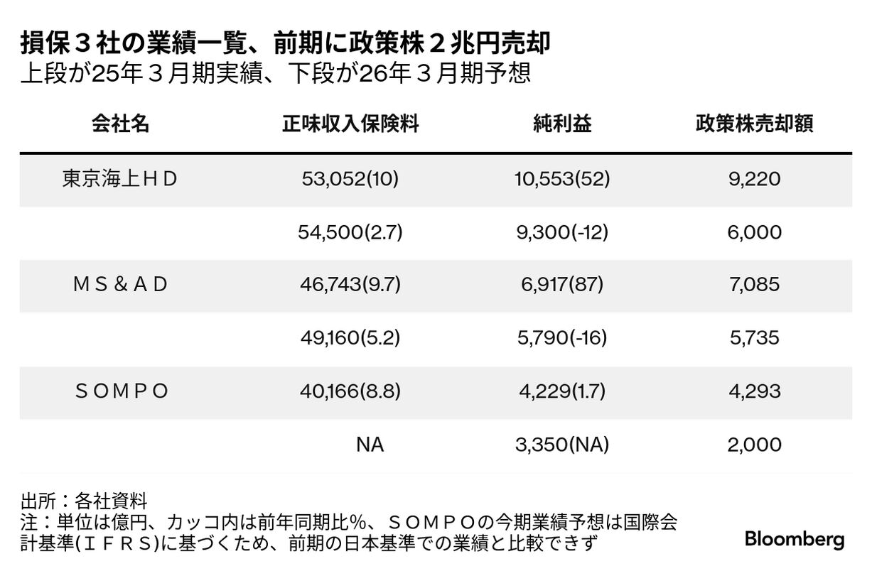 国内損害保険大手3社は今期(2026年3月期)に政策保有株式を時価ベースで合計1兆3735億円売却する計画だ。前期実績と比べると減少する見通しだが、高水準での売却を続ける。