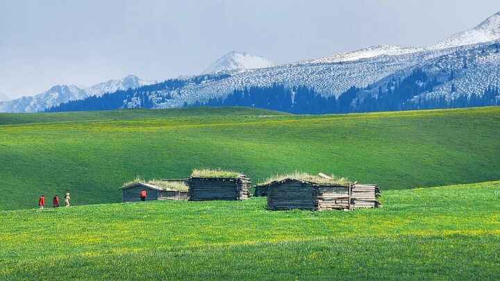 中国のカメラマン、周万青が、雄大な山と美しい草原の風景が広がる新疆ウイグル自治区の村を紹介する。