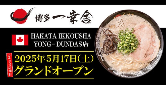 世界12カ国90店舗以上を展開、ラーメンのグローバルブランド、博多一幸舎や幸ちゃんラーメンを運営する、株式会社ウインズジャパンホールディングス(所在地 福岡県福岡市博多区、代表取締役社長 吉村 幸助 以下当社)は、この度、地元福岡博多をはじめ、日本国内外でもたくさんのお客様にご贔屓にしていただいている、「博多一幸舎」を、カナダオンタリオ州トロントに、元祖泡系「博多一幸舎 (HAKATA IKKOUSHA YONGE-DUNDAS店)」を2025年5月17日(土)11時(現地時間)、グランドオープンしました。