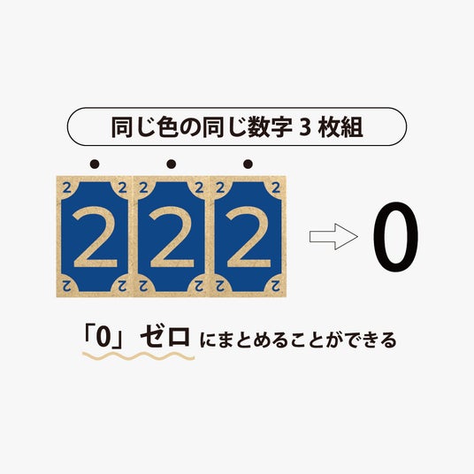 3枚組の特殊コンボを用いて、数字タイルをうまくまとめましょう。